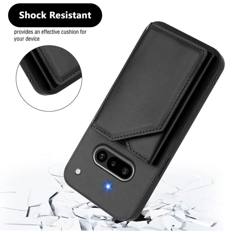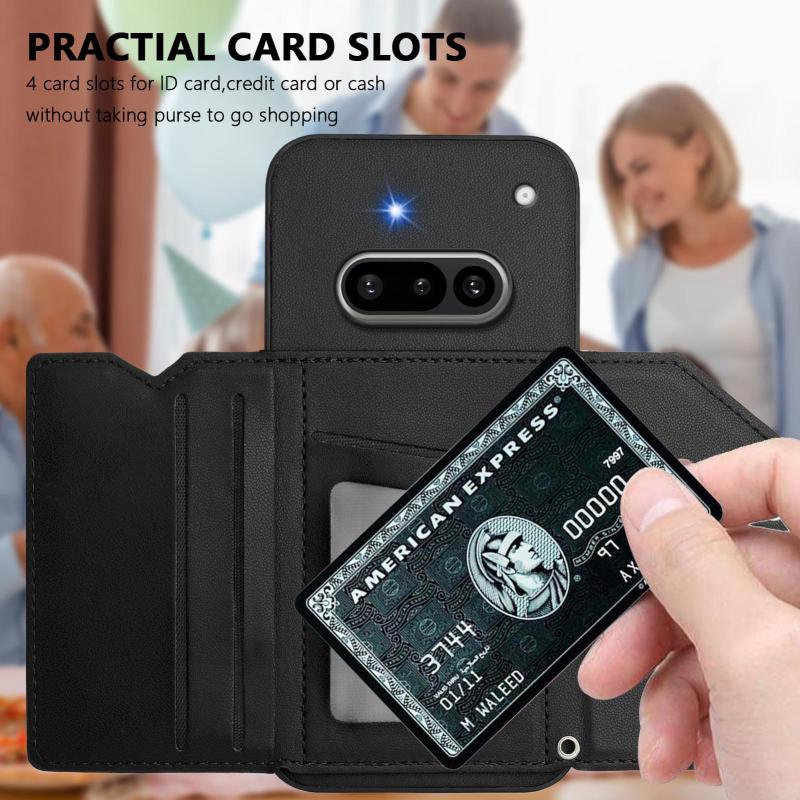 For Nothing Phone 3a Skin Feel Four Card Slots Phone Case with Wrist Strap(Black)