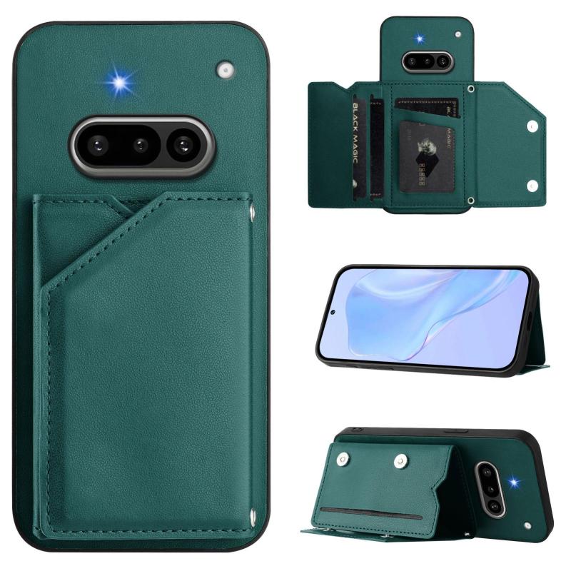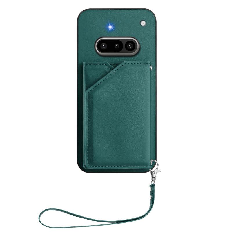 For Nothing Phone 3a Skin Feel Four Card Slots Phone Case with Wrist Strap(Green)