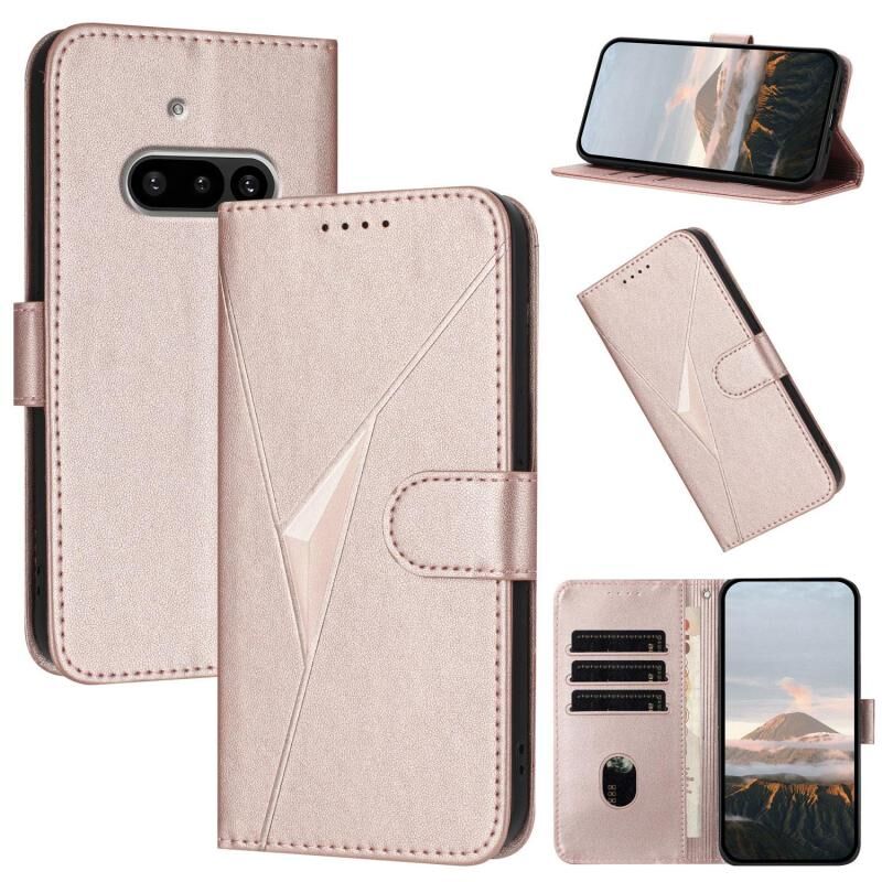 For Nothing Phone 3a Triangle Pattern Buckle Clasp Leather Phone Case(Rose Gold)