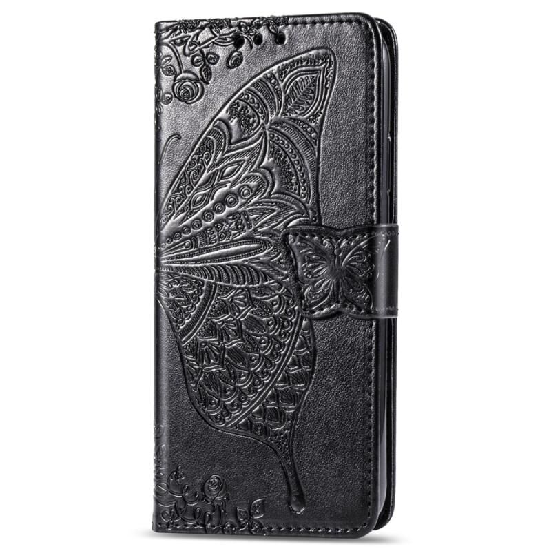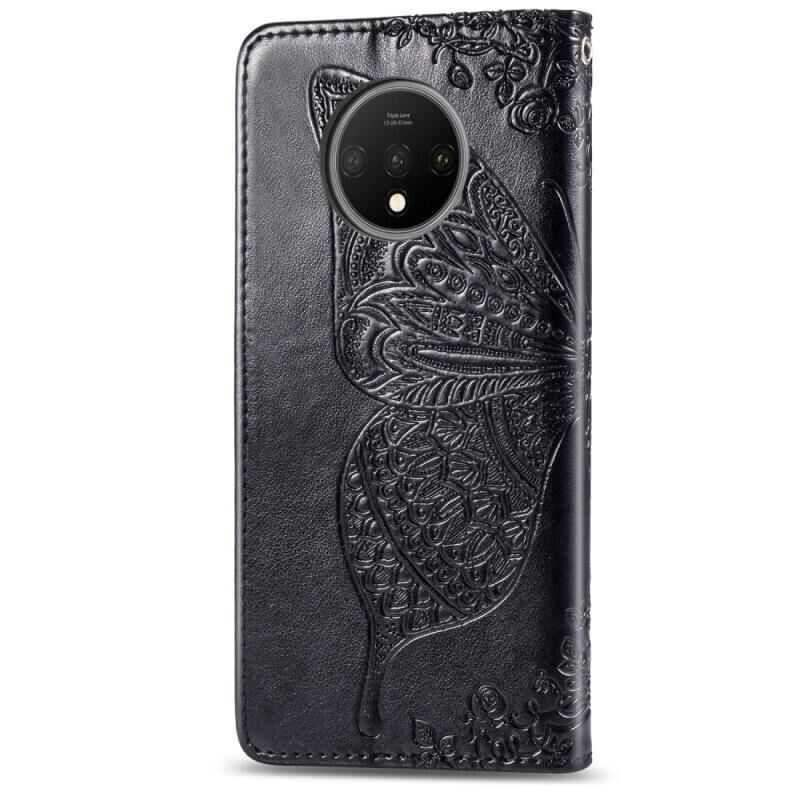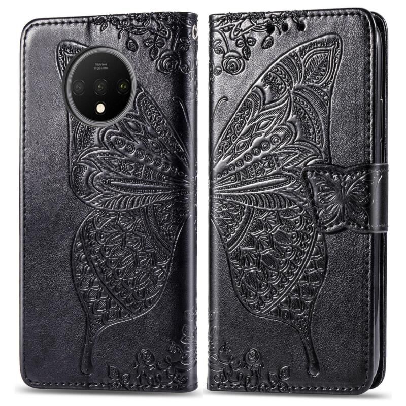 For One Plus 7T Butterfly Love Flower Embossed Horizontal Flip Leather Case with Bracket Lanyard Card Slot Wallet(Black)