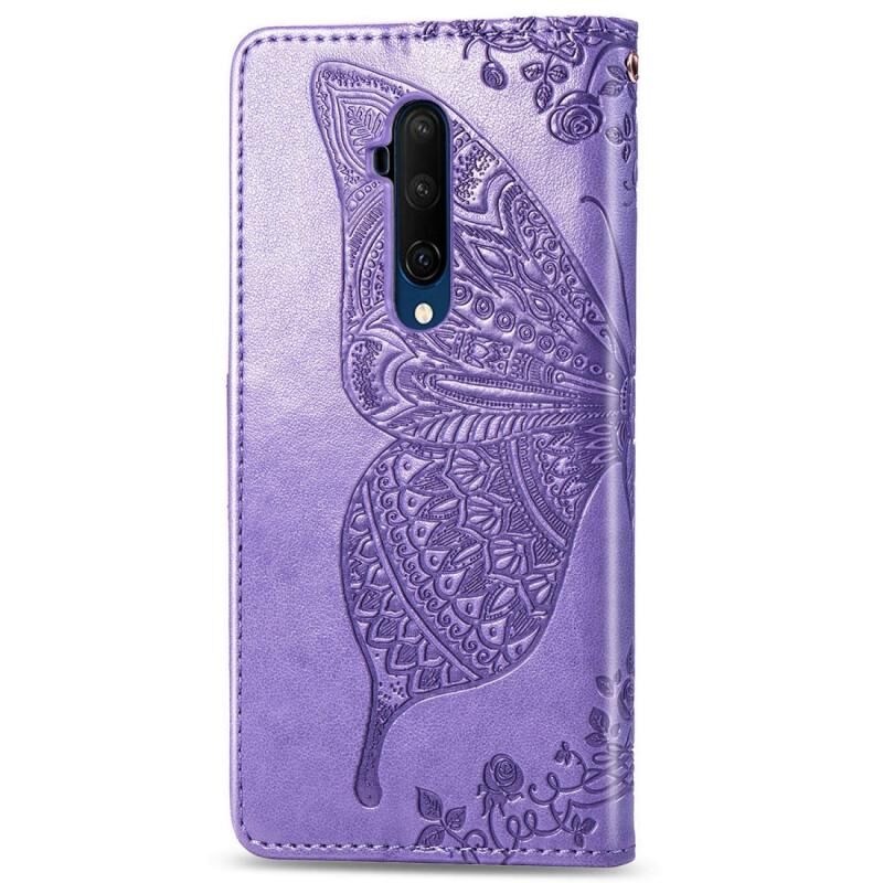 Θήκη δέρματος οριζόντιας αναδίπλωσης για One Plus 7T Pro με ανάγλυφο σχέδιο πεταλούδας, λουλουδιών, με στήριγμα, λουρί καρπού και θήκη για κάρτες (Γκρι)