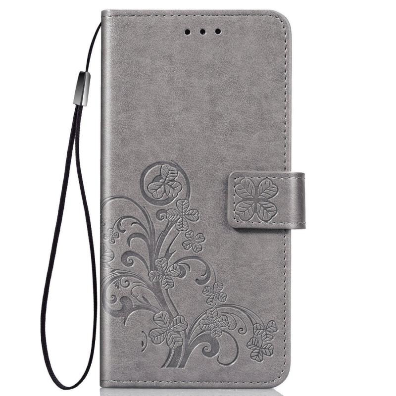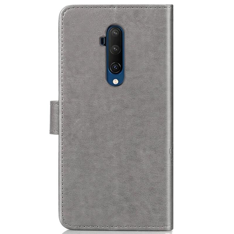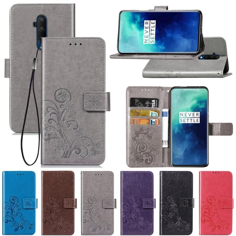 Για το One Plus 7T Pro, Δερμάτινη θήκη προστασίας κινητού τηλεφώνου με κουμπωτή αγκράφα τριφυλλιού, θήκη με κορδόνι, υποδοχή κάρτας, πορτοφόλι και λειτουργία βάσης (Μωβ)