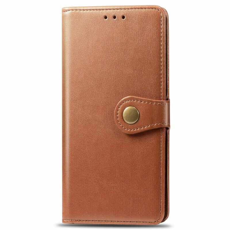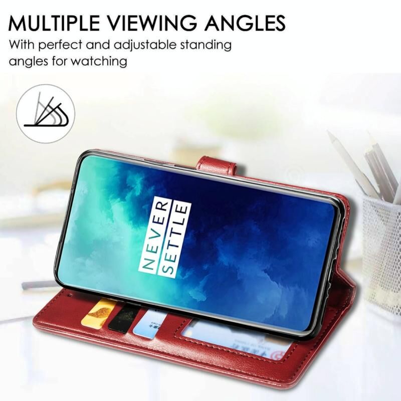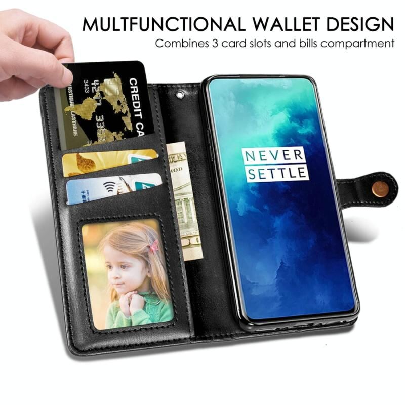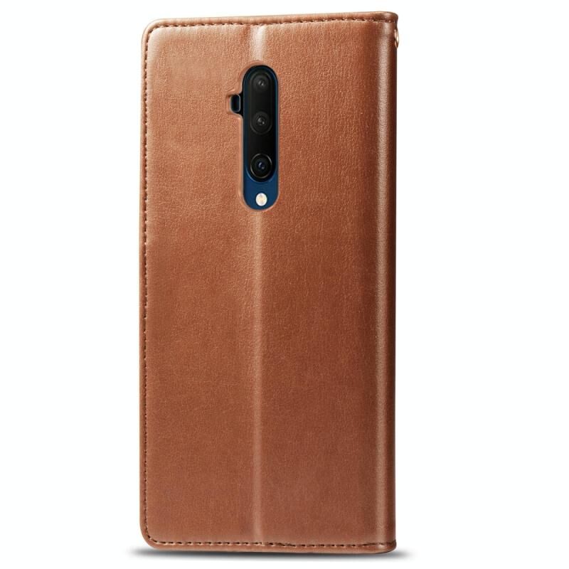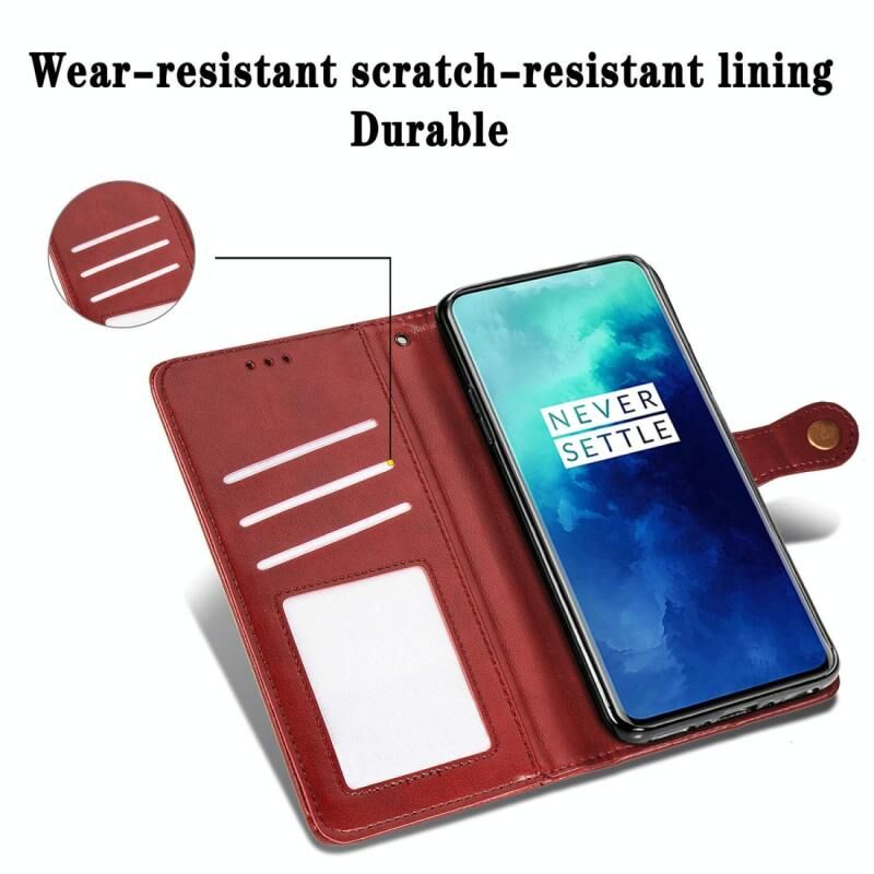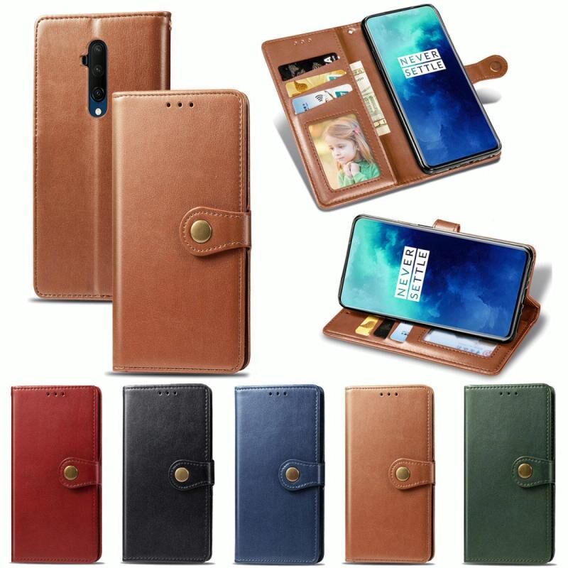 Για One Plus 7T Pro Ρετρό στερεό χρώμα δέρμα αγκράφα υπόθεση τηλέφωνο με κορδόνι & πλαίσιο φωτογραφιών & υποδοχή κάρτας & πορτοφόλι & Stand λειτουργία (Καφέ)