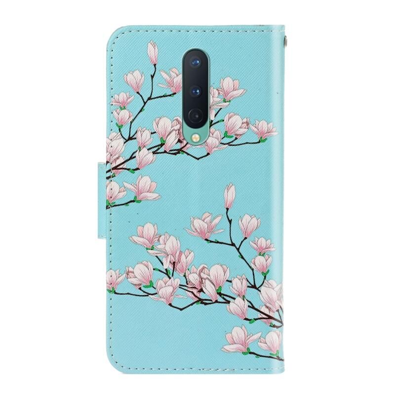 Θήκη δέρματος οριζόντιας αναδίπλωσης για One Plus 8 με σχέδιο, βάση στήριξης & θήκη καρτών & πορτοφόλι (Μαγνολία)