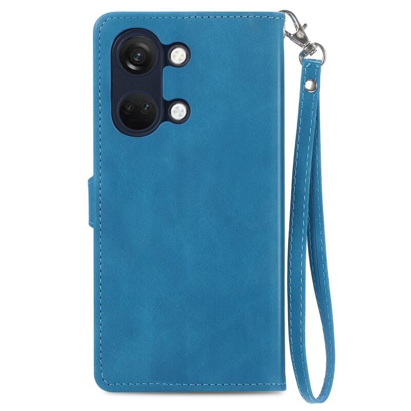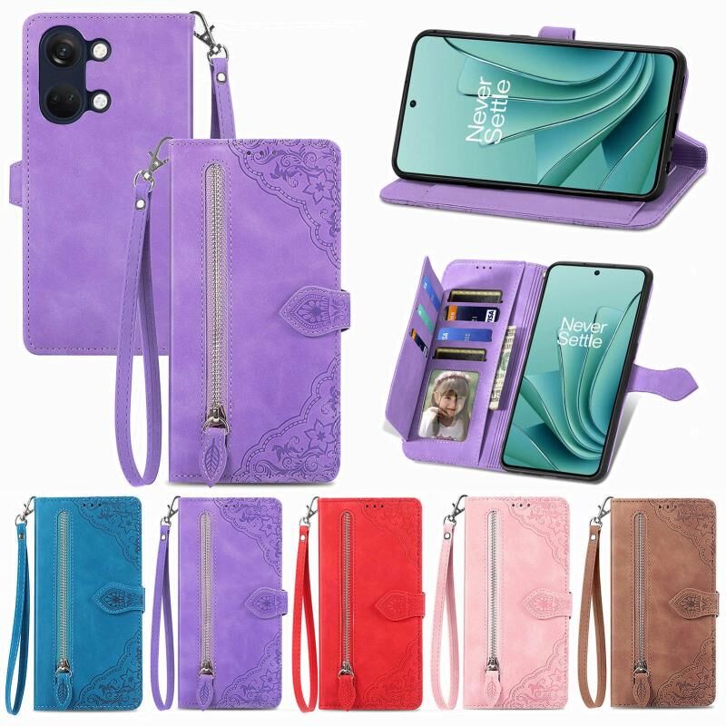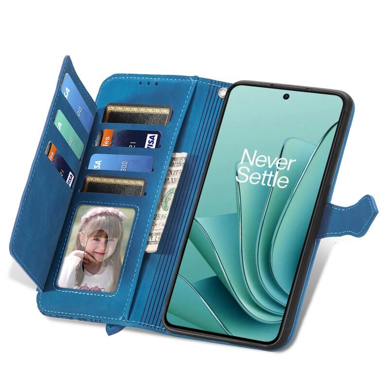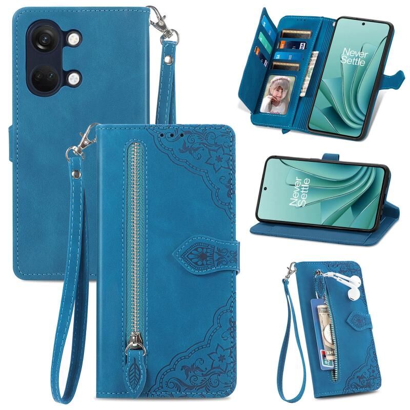 Για One Plus Ace 2V ανάγλυφο λουλούδι φερμουάρ δερμάτινη θήκη τηλεφώνου (μπλε)