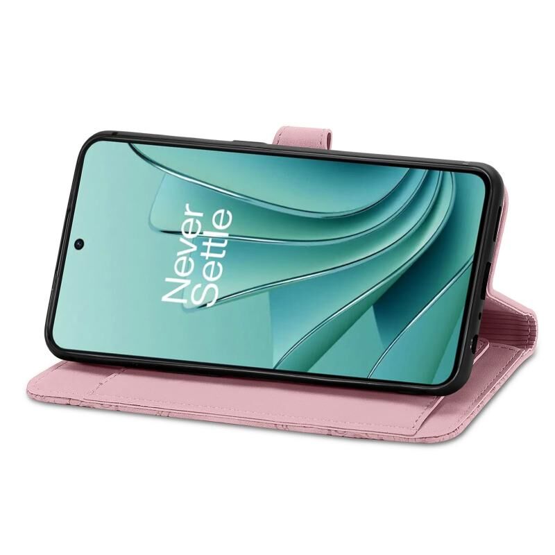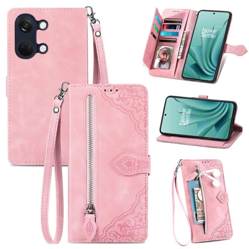 Για One Plus Ace 2V ανάγλυφο λουλούδι φερμουάρ δερμάτινη θήκη τηλεφώνου (ροζ)