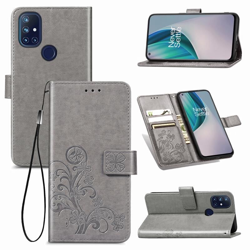 Για το One Plus Nord N10 5G, Θήκη Προστασίας Κινητού από Δέρμα με Κούμπωμα Τριφυλλιού, ανάγλυφο, με Λουρί, Θήκη Καρτών, Πορτοφόλι & Λειτουργία Στήριξης (Μωβ)