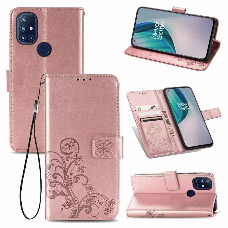 Για το One Plus Nord N10 5G, Θήκη Προστασίας Κινητού από Δέρμα με Κούμπωμα Τριφυλλιού, ανάγλυφο, με Λουρί, Θήκη Καρτών, Πορτοφόλι & Λειτουργία Στήριξης (Μωβ)