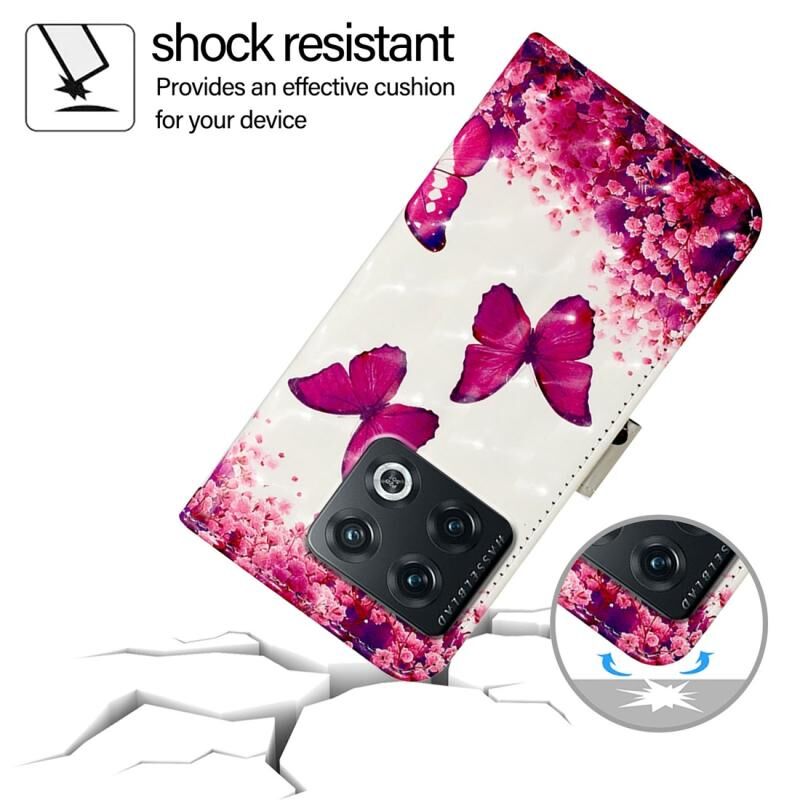Θήκη τηλεφώνου από δέρμα με οριζόντιο άνοιγμα και τρισδιάστατη ζωγραφική για OnePlus 10 Pro (Ροζ Πεταλούδα)