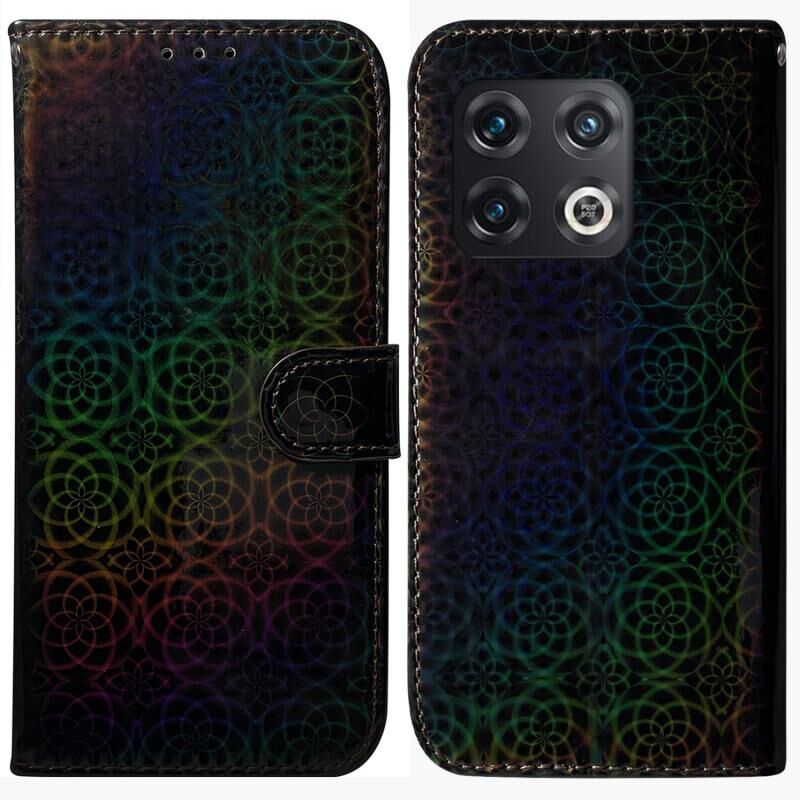 Για OnePlus 10 Pro 5G Πολύχρωμο μαγνητική πόρπη δερμάτινη θήκη τηλεφώνου (μαύρο)