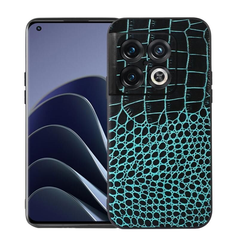 Θήκη τηλεφώνου από γνήσιο δέρμα αγελάδας με επικάλυψη κροκόδειλου για OnePlus 10 Pro 5G (Μαύρο)
