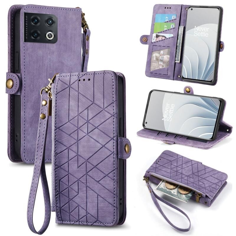 Για OnePlus 10 Pro 5G γεωμετρική φερμουάρ πορτοφόλι πλευρά πόρπη δερμάτινη θήκη τηλεφώνου (μοβ)