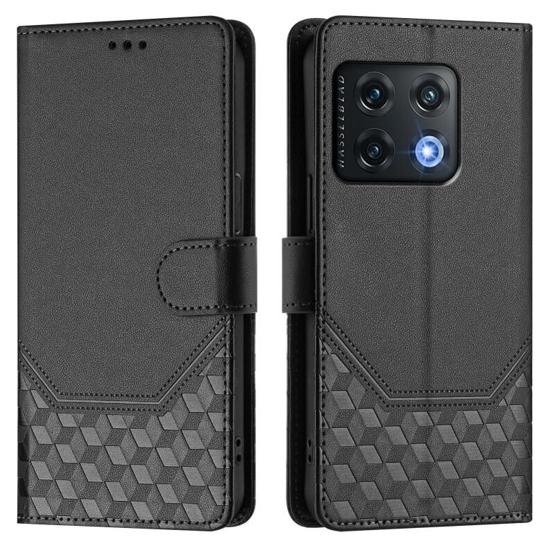 Για OnePlus 10 Pro 5G Honeycomb ανάγλυφη RFID δερμάτινη θήκη τηλεφώνου (Μαύρο)