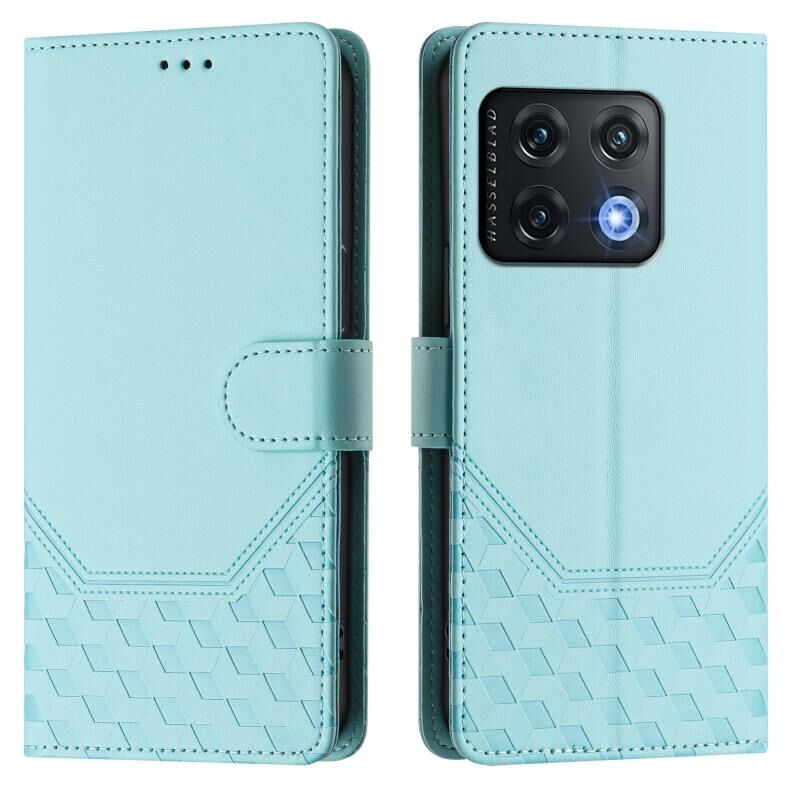 Για OnePlus 10 Pro 5G κηρήθρα ανάγλυφη RFID δερμάτινη θήκη τηλεφώνου (πράσινο μέντα)