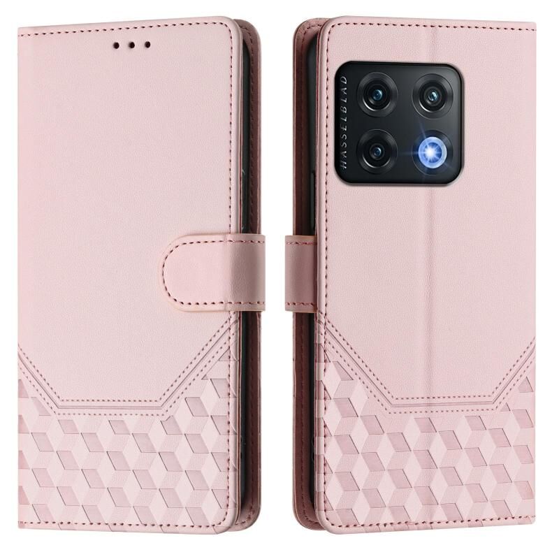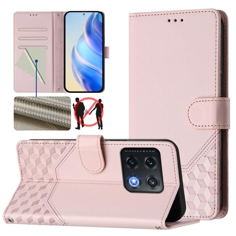 Για OnePlus 10 Pro 5G κηρήθρα ανάγλυφη RFID δερμάτινη θήκη τηλεφώνου (ροζ)