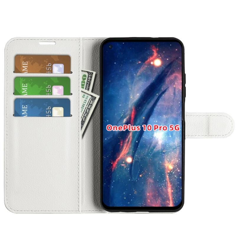 Για OnePlus 10 Pro 5G Litchi υφή οριζόντια Flip προστατευτική θήκη με κάτοχο & υποδοχές για κάρτες & πορτοφόλι (λευκό)