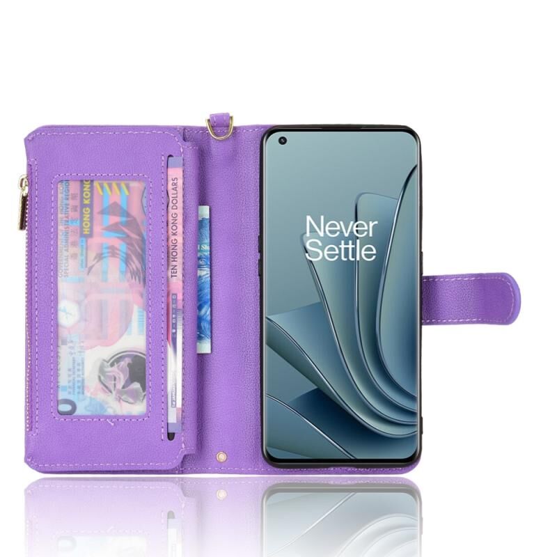 Για OnePlus 10 Pro 5G Litchi υφή φερμουάρ δερμάτινη θήκη τηλεφώνου (μωβ)