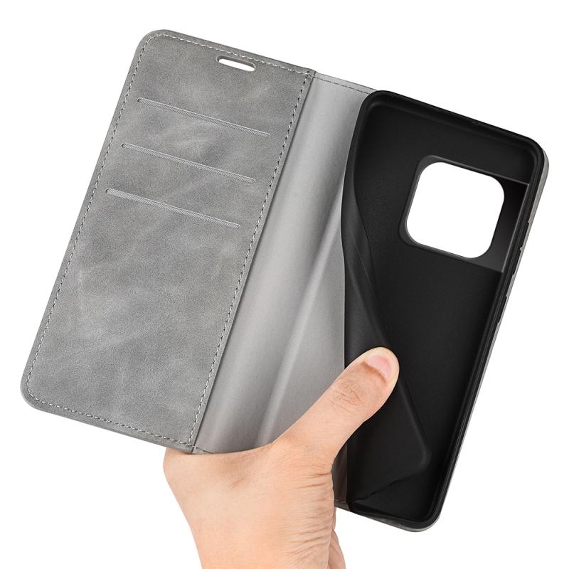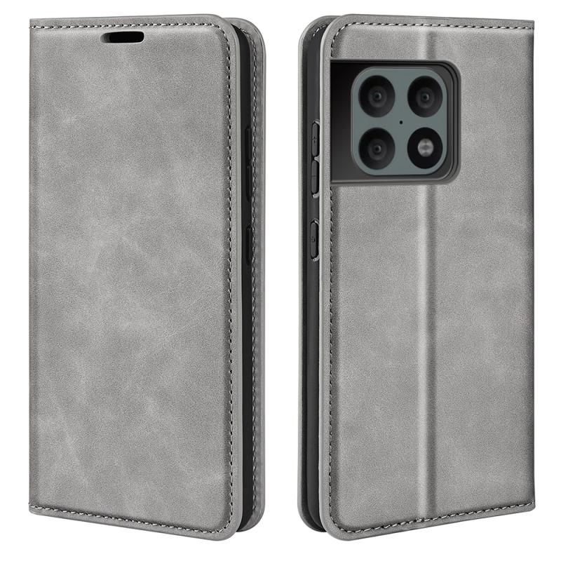 For OnePlus 10 Pro 5G Retro-skin Magnetic Suction Phone Leather Case with Holder & Card Slots & Wallet(Grey)