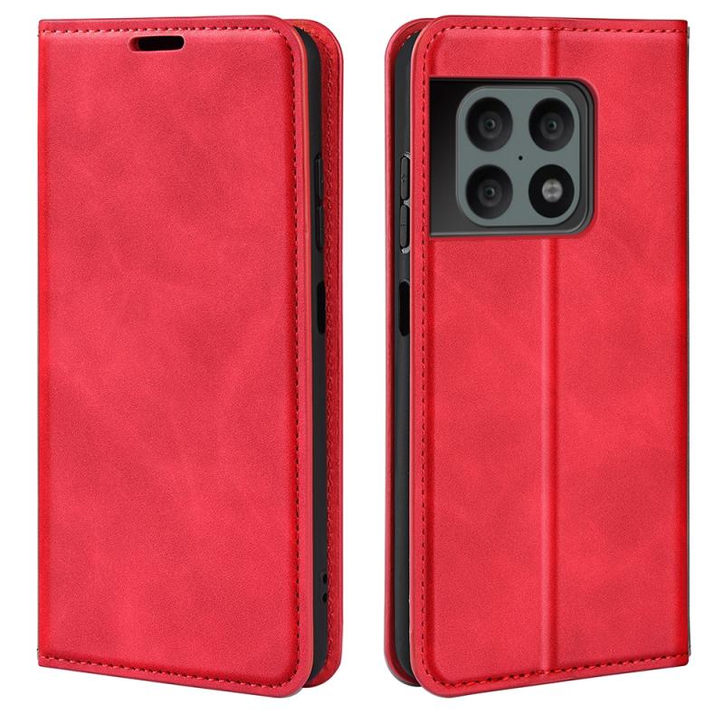 For OnePlus 10 Pro 5G Retro-skin Magnetic Suction Phone Leather Case with Holder & Card Slots & Wallet(Red)