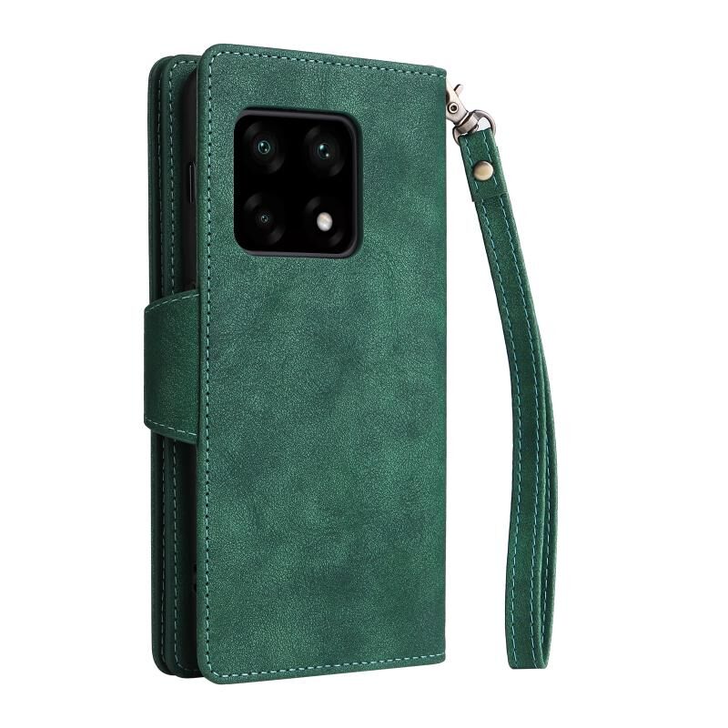 Για OnePlus 10 Pro 5G Rivet πόρπη 9 κάρτες τρεις φορές δερμάτινη θήκη τηλεφώνου (πράσινο)