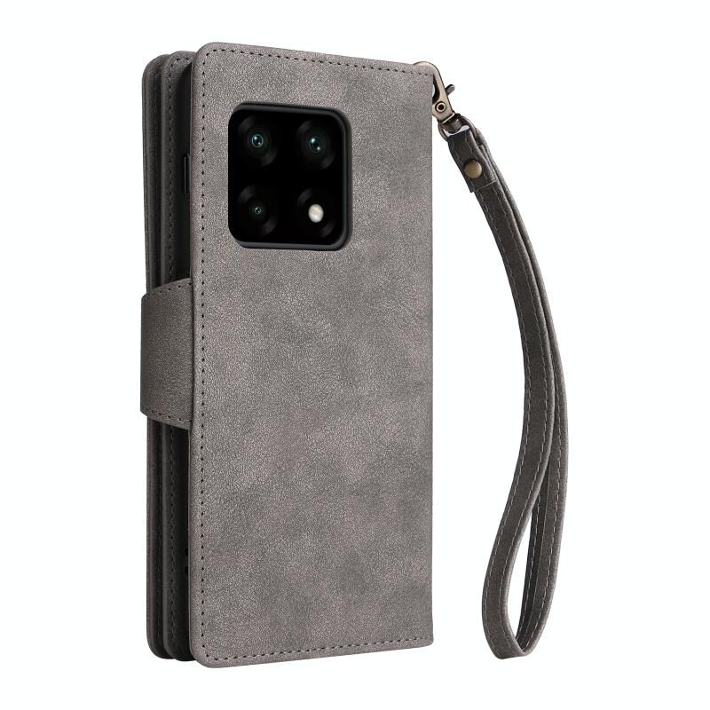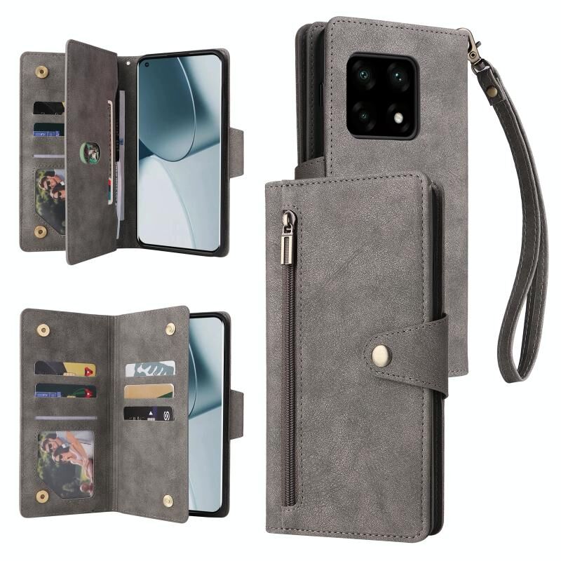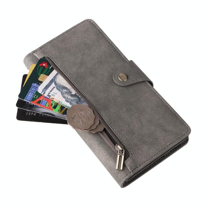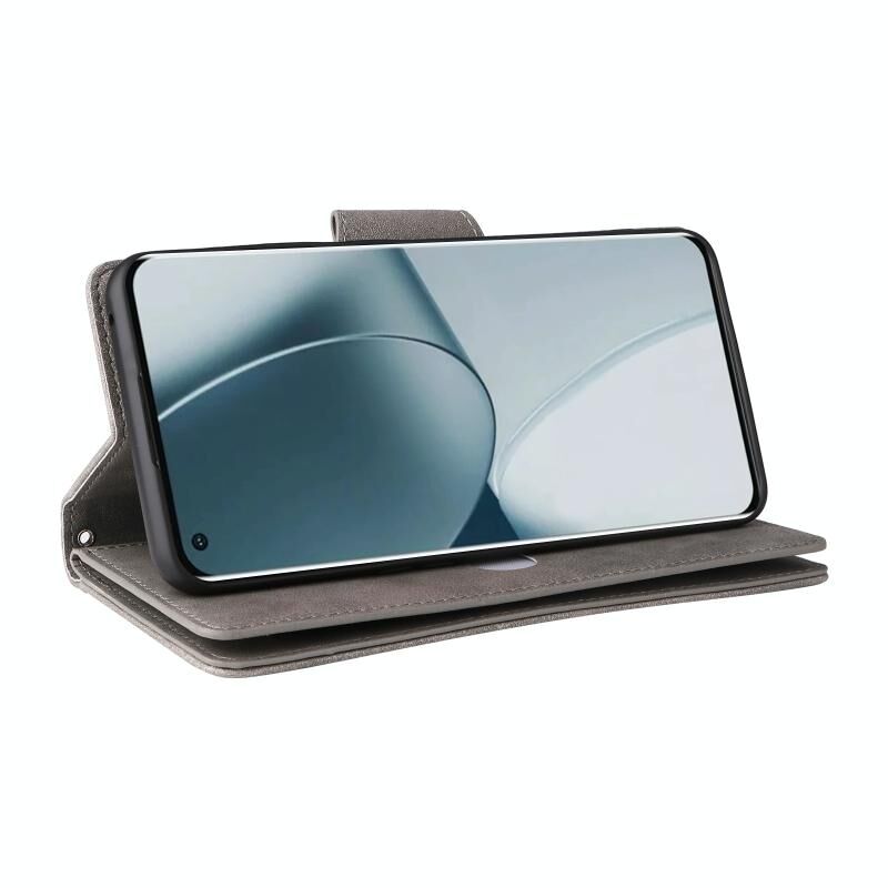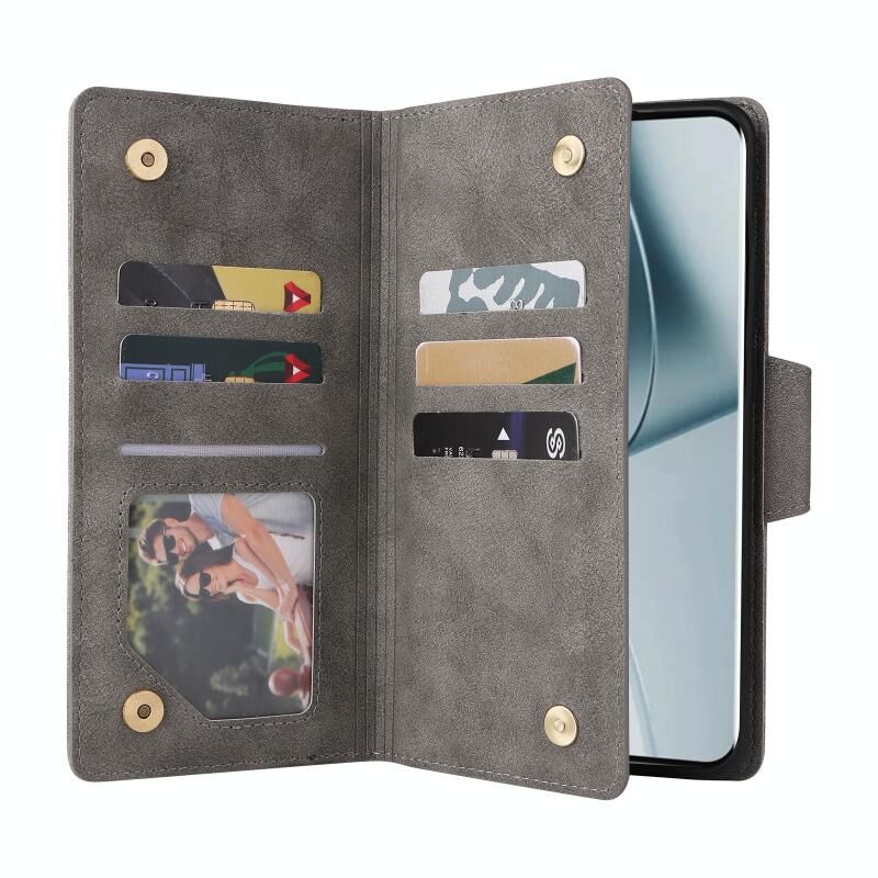 Για OnePlus 10 Pro 5G Rivet πόρπη 9 κάρτες τρεις φορές δερμάτινη θήκη τηλεφώνου (γκρι)
