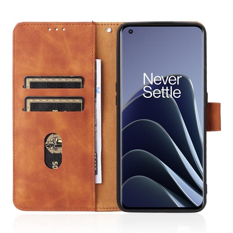 Για OnePlus 10 Pro 5G δέρμα αίσθηση μαγνητική πόρπη μοσχάρι υφή PU υπόθεση τηλεφώνου (καφέ)