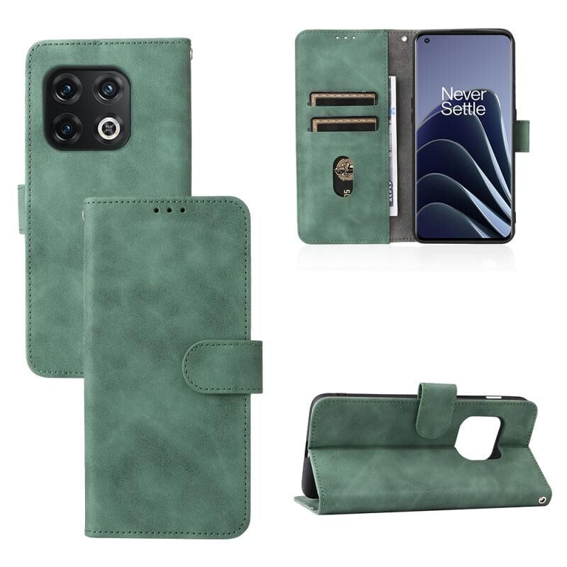 For OnePlus 10 Pro 5G Skin Feel Magnetic Buckle Calf Texture PU Phone Case(Green)