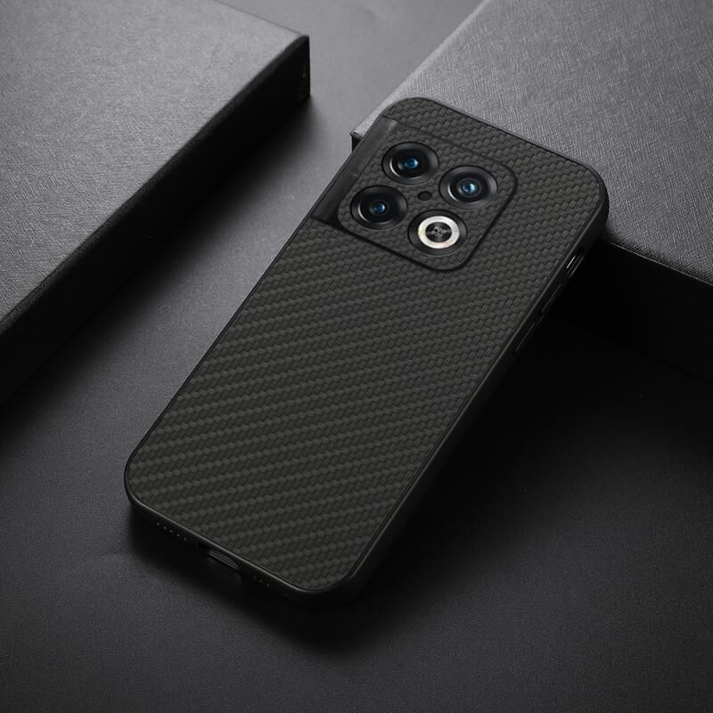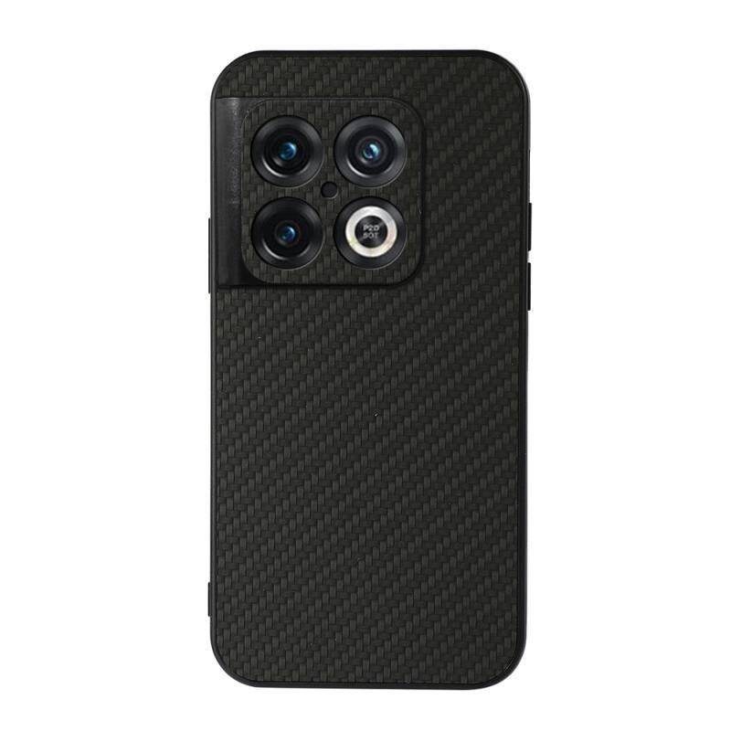 Για OnePlus 10 Pro Ακριβής τρύπα ανθρακονήματα υφή PU τηλέφωνο υπόθεση (μαύρο)