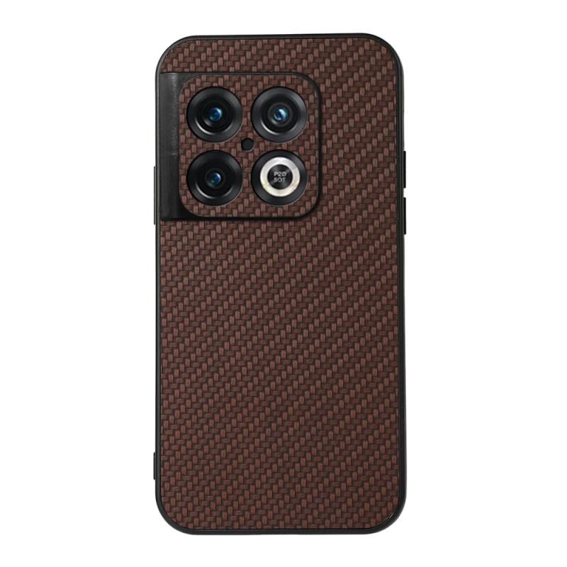 Για OnePlus 10 Pro Ακριβής τρύπα ανθρακονήματα υφή PU τηλέφωνο υπόθεση (καφέ)