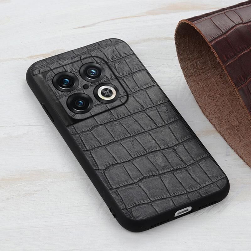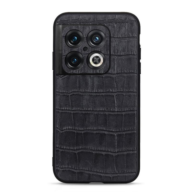 Θήκη τηλεφώνου από γνήσιο δέρμα με υφή κροκόδειλου και ακριβείς οπές για OnePlus 10 Pro (Μαύρο)