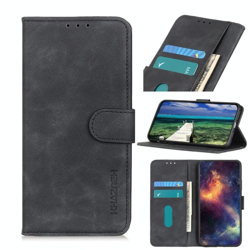 Για OnePlus 10 Pro KHAZNEH Ρετρό υφή PU + TPU Οριζόντια Flip δέρμα τηλέφωνο υπόθεση με θήκη & υποδοχές καρτών & πορτοφόλι (μαύρο)