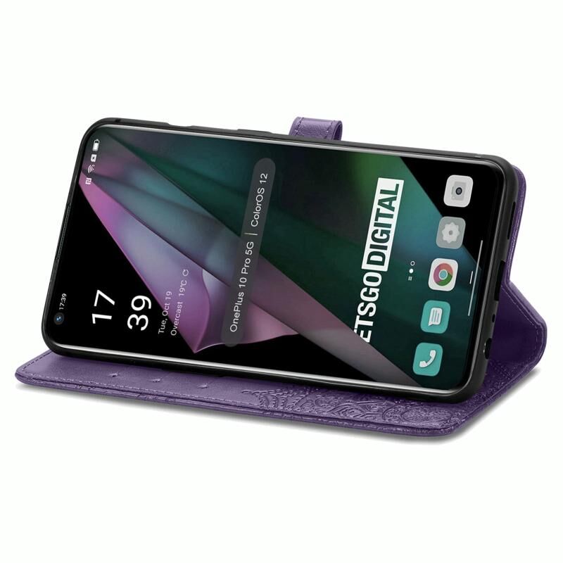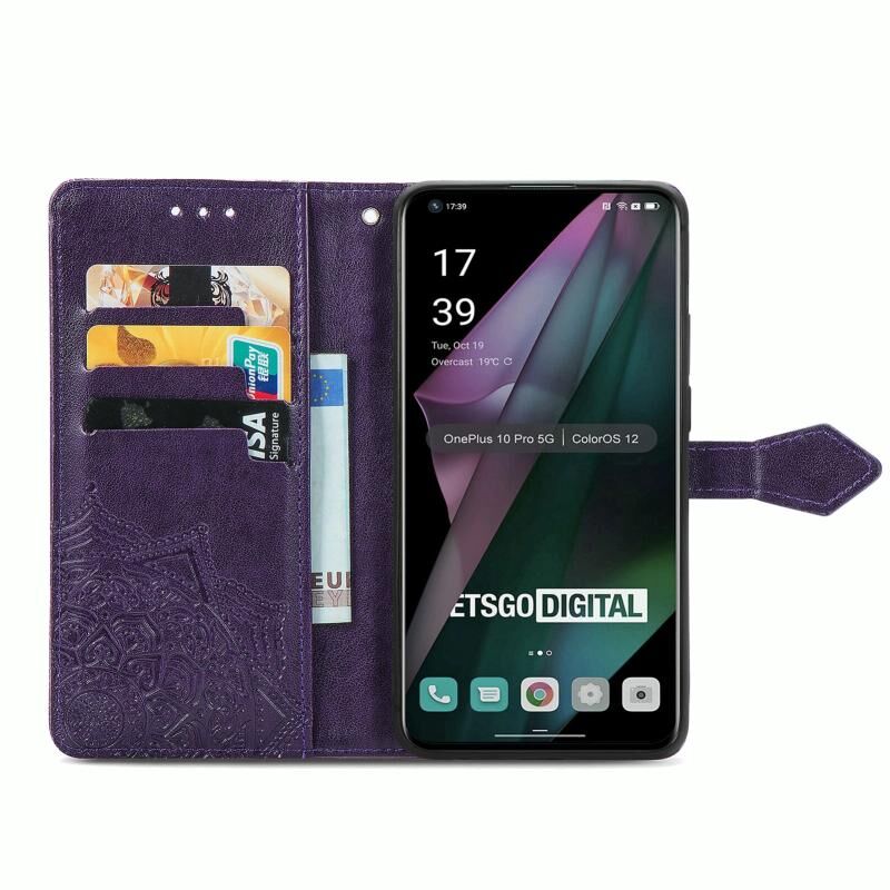 Για OnePlus 10 Pro Mandala λουλούδι ανάγλυφο οριζόντια Flip δέρμα τηλέφωνο υπόθεση (μωβ)
