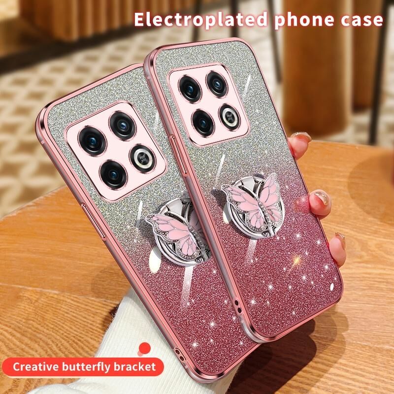 Για OnePlus 10 Pro Επιμεταλλωμένο διαβάθμιση Glitter πεταλούδα κάτοχος TPU τηλέφωνο υπόθεση (μαύρο)
