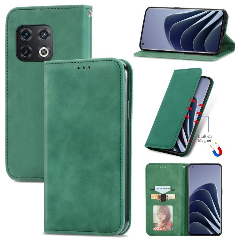 Για OnePlus 10 Pro Ρετρό δέρμα αίσθηση μαγνητική οριζόντια Flip δέρμα τηλέφωνο υπόθεση (πράσινο)