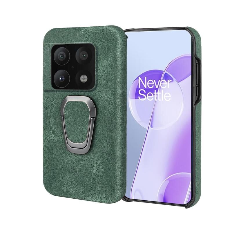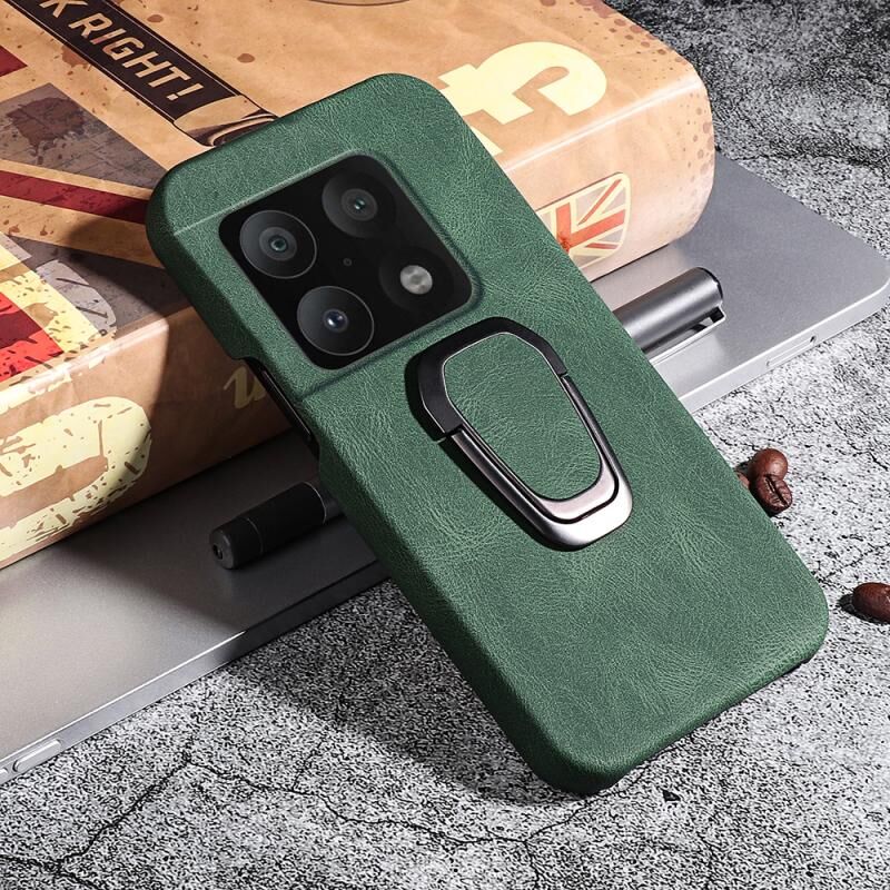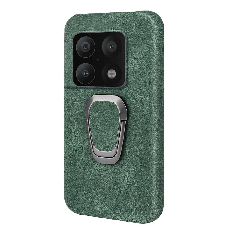 For OnePlus 10 Pro Ring Holder PU Phone Case(Dark Green)
