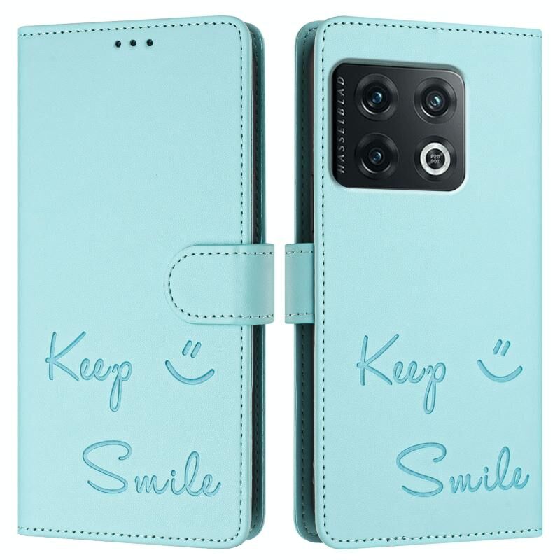Για OnePlus 10 Pro Χαμόγελο ανάγλυφο RFID δερμάτινη θήκη τηλεφώνου (πράσινο χρώμα)