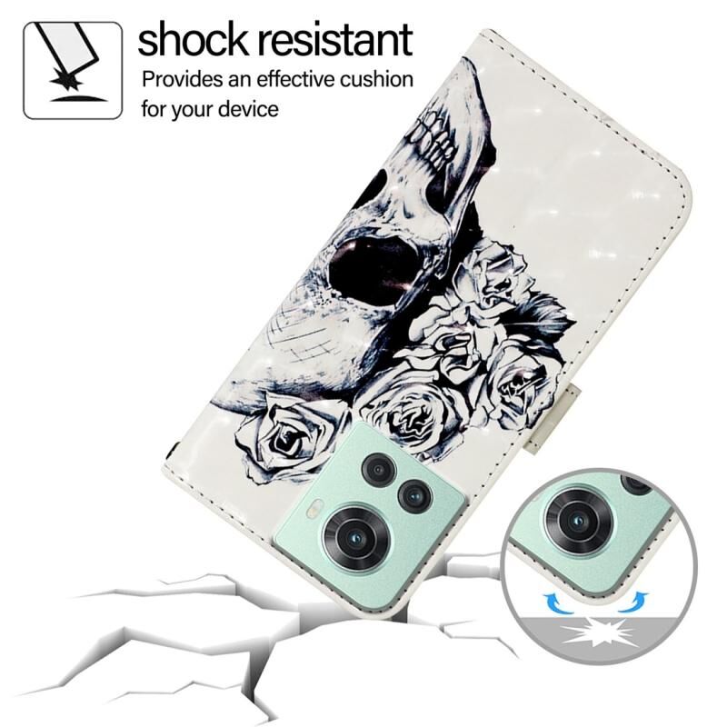 Θήκη τηλεφώνου από δέρμα με οριζόντιο άνοιγμα και τρισδιάστατη ζωγραφική για OnePlus 10R / 10R Prime / OnePlus Ace (Κρανίο)