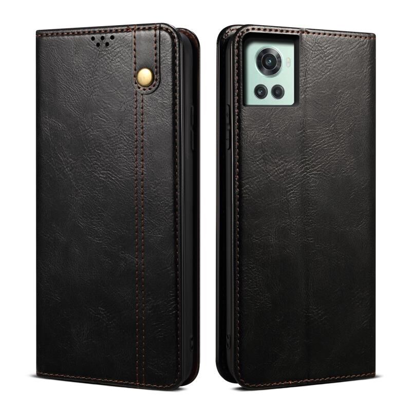 Για OnePlus 10R / Ace Oil Wax Crazy Horse Υφή δερμάτινη θήκη τηλεφώνου (μαύρο)