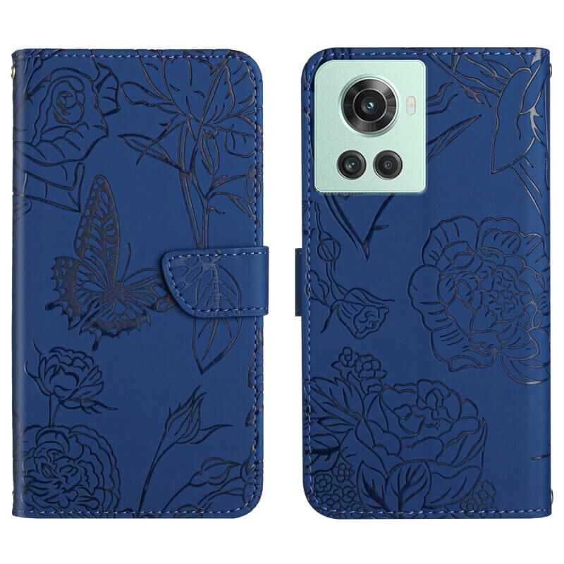Για OnePlus 10R/ACE Skin Feel Πεταλούδα Peony ανάγλυφη δερμάτινη θήκη τηλεφώνου (μπλε)