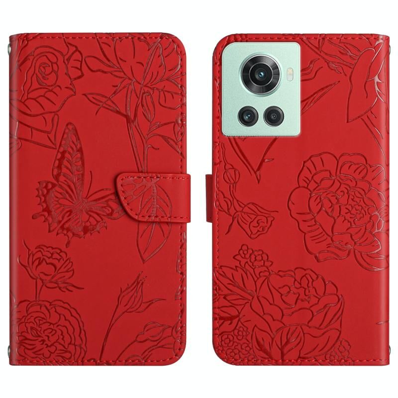 Για OnePlus 10R/ACE Skin Feel Πεταλούδα Peony ανάγλυφη δερμάτινη θήκη τηλεφώνου (κόκκινο)