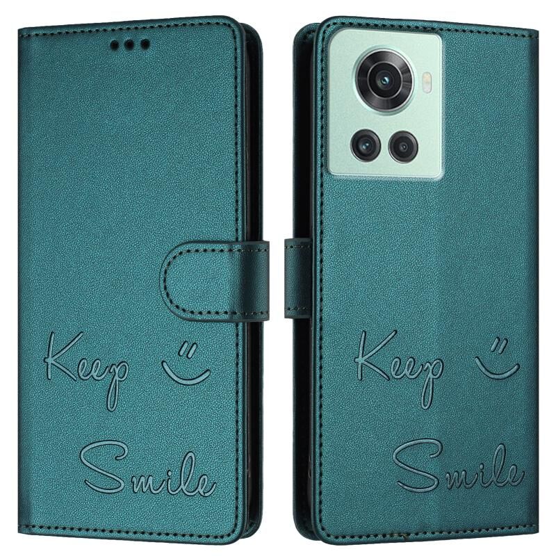 Για OnePlus 10R / Ace χαμόγελο ανάγλυφο RFID δερμάτινη θήκη τηλεφώνου (Πράσινο παγώνι)