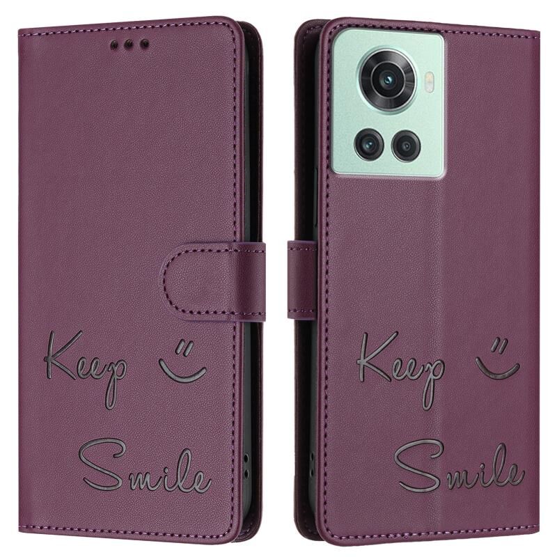 Για OnePlus 10R / Ace χαμόγελο ανάγλυφο RFID δερμάτινη θήκη τηλεφώνου (Violet)