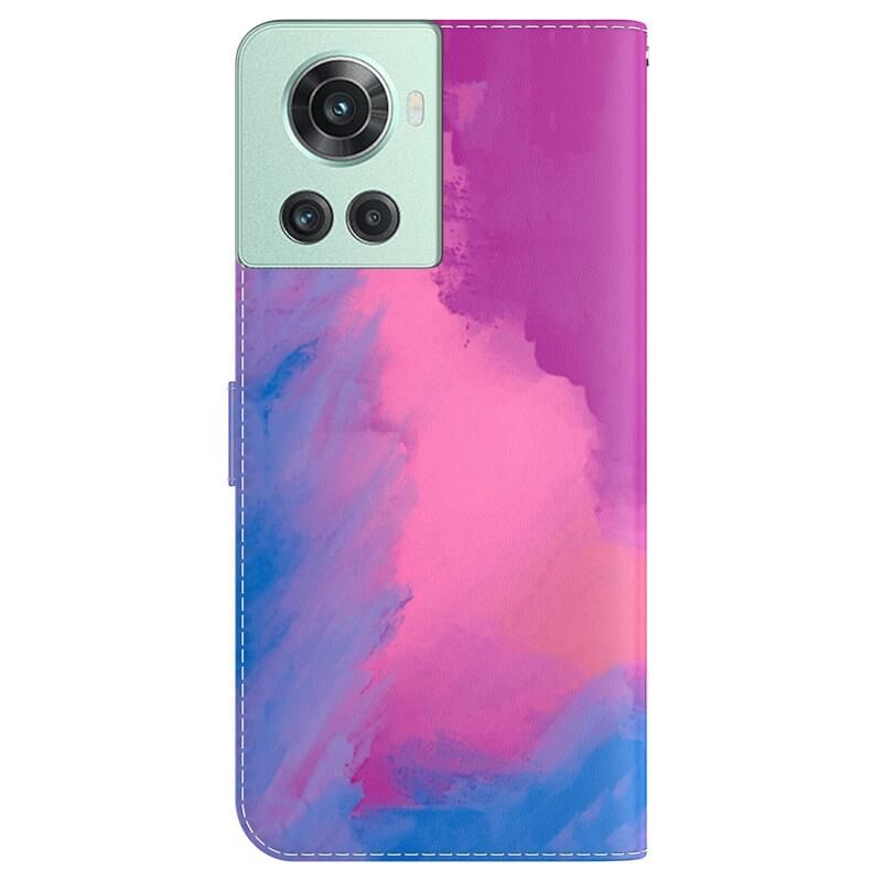 Για OnePlus 10R / Ace Watercolor μοτίβο δερμάτινη θήκη τηλεφώνου (μοβ κόκκινο)