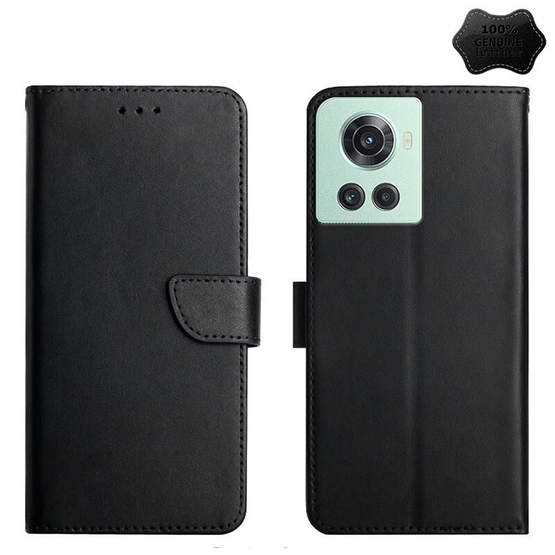 Θήκη τηλεφώνου OnePlus 10R από γνήσιο δέρμα, οριζόντια, με μαγνητικό κλείσιμο και προστασία από δακτυλικά αποτυπώματα (Μαύρο)