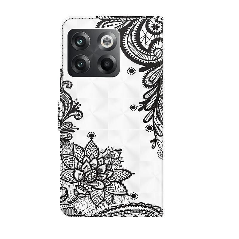 Θήκη τηλεφώνου για OnePlus 10T, TPU + PU με τρισδιάστατο σχέδιο ζωγραφικής (Διαγώνιο Μαύρο Λουλούδι)