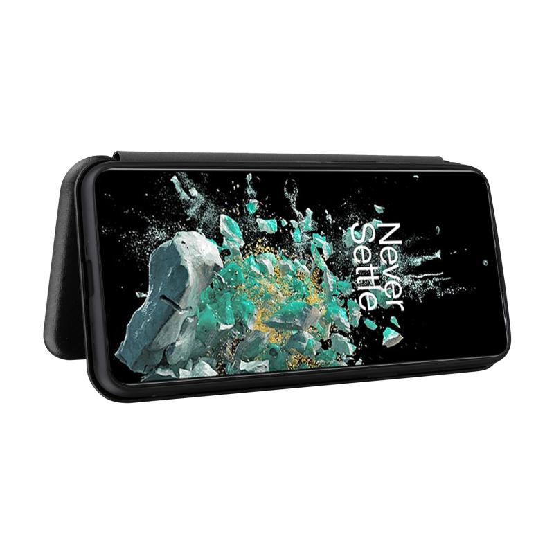 Θήκη τηλεφώνου από δέρμα με υφή ανθρακονήματος για OnePlus 10T 5G (Πράσινο)