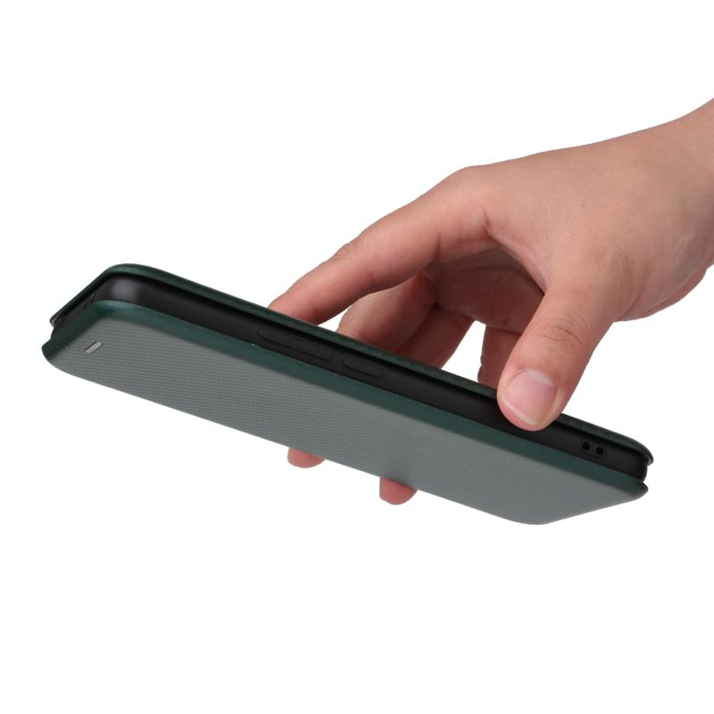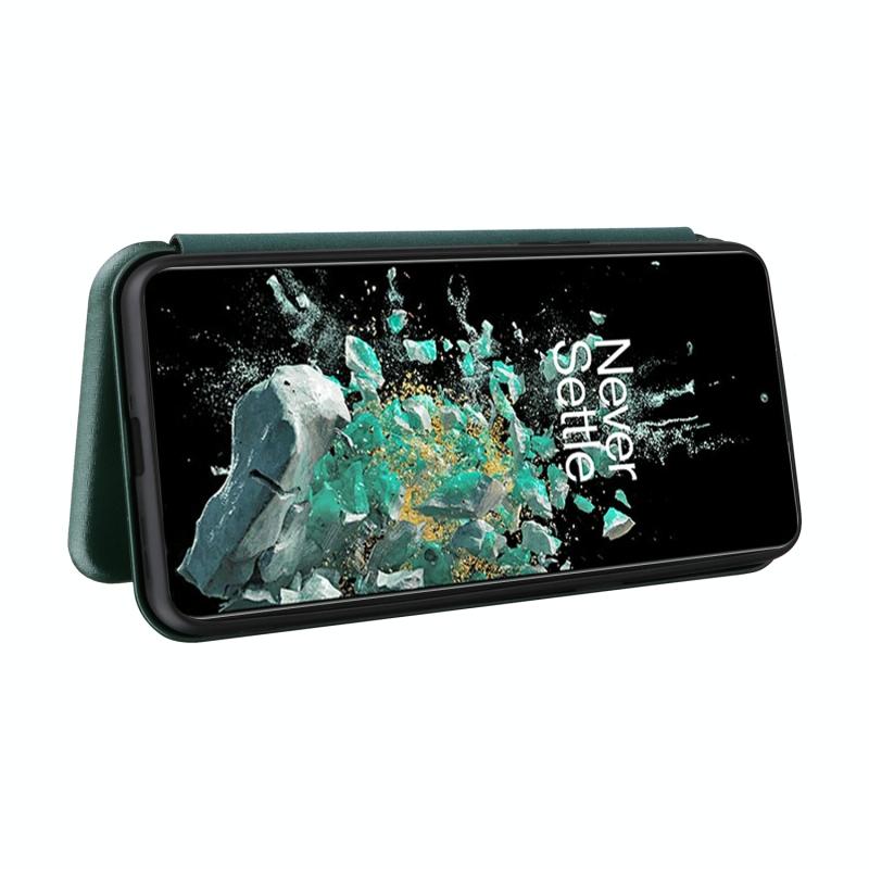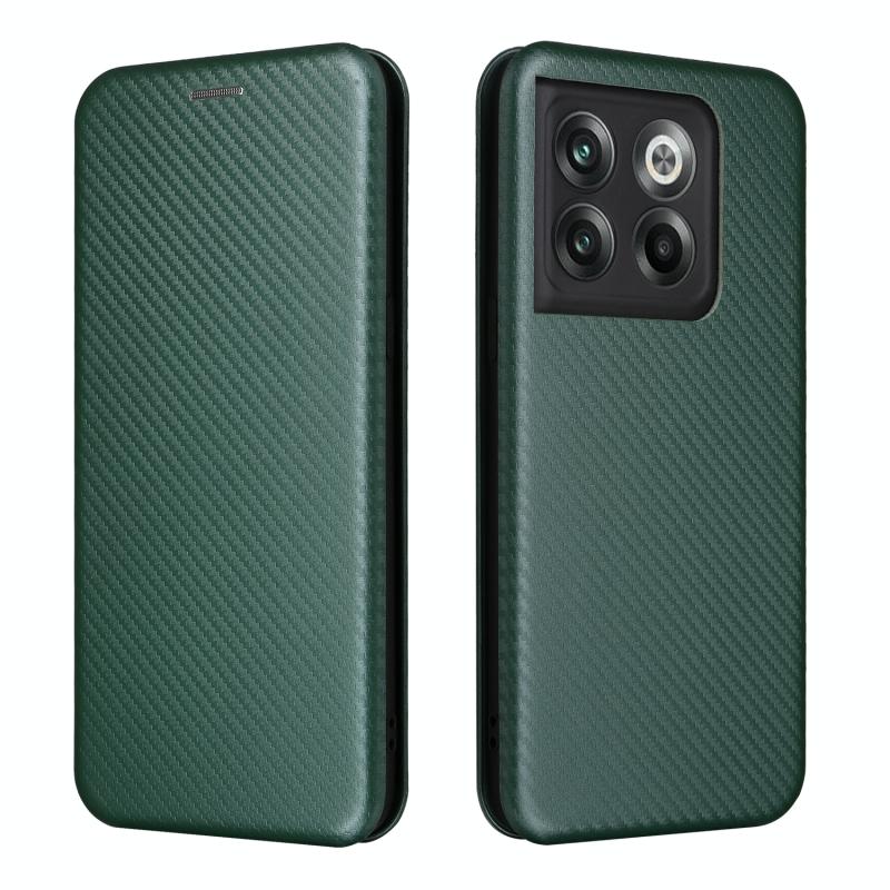 Θήκη τηλεφώνου από δέρμα με υφή ανθρακονήματος για OnePlus 10T 5G (Πράσινο)