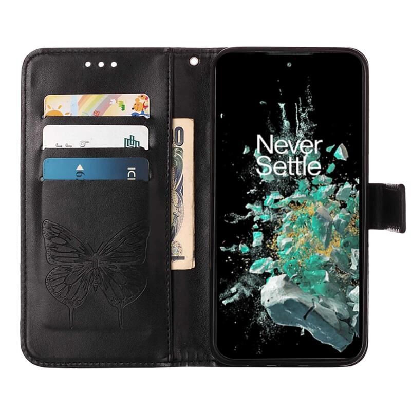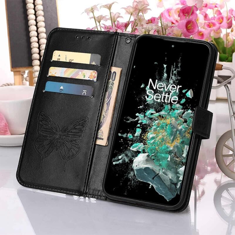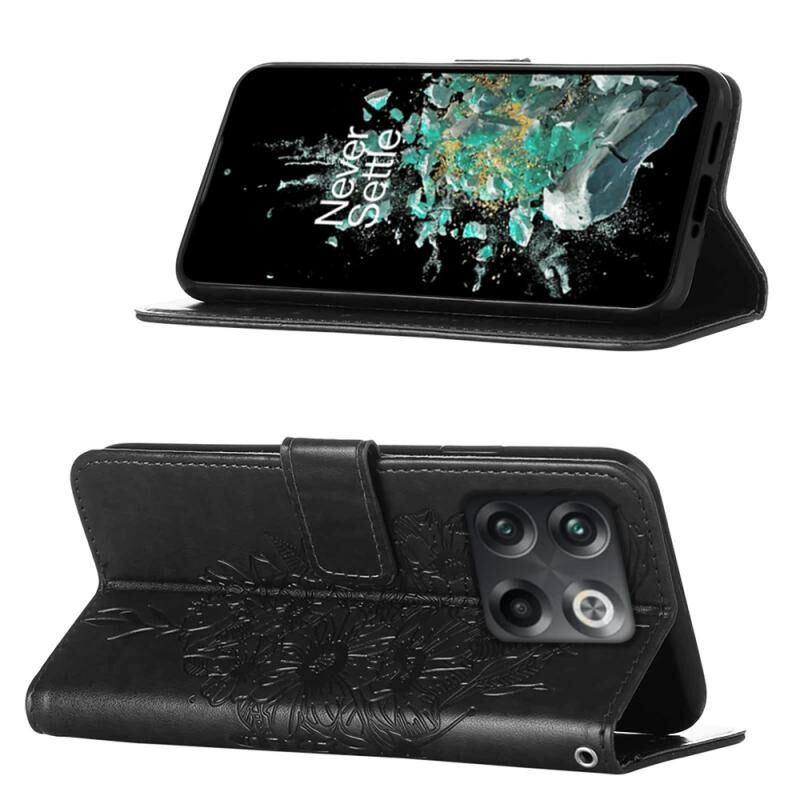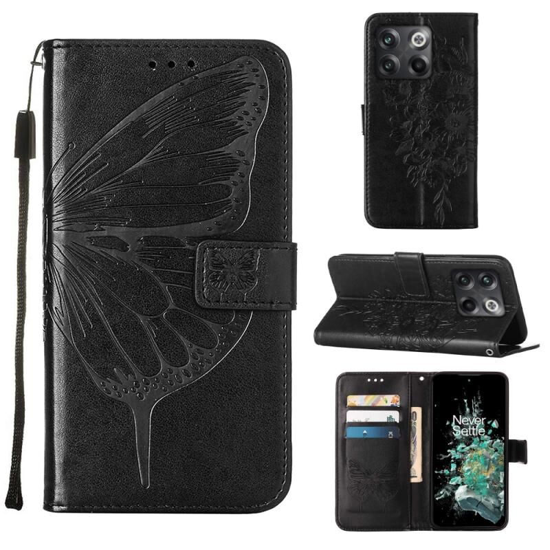 Θήκη τηλεφώνου από δέρμα με ανάγλυφο σχέδιο πεταλούδας, τύπου flip, για OnePlus 10T 5G Global (Μπλε)