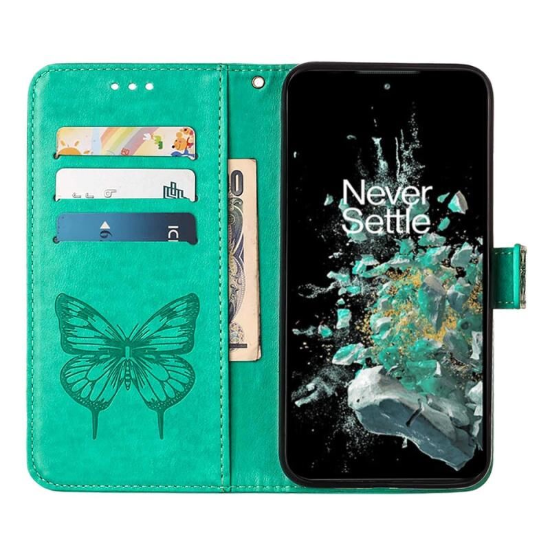 Θήκη τηλεφώνου από δέρμα με ανάγλυφο σχέδιο πεταλούδας, τύπου flip, για OnePlus 10T 5G Global (Μπλε)