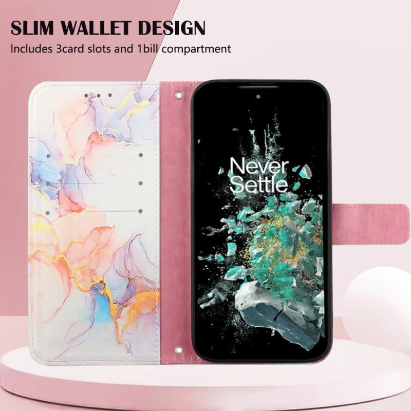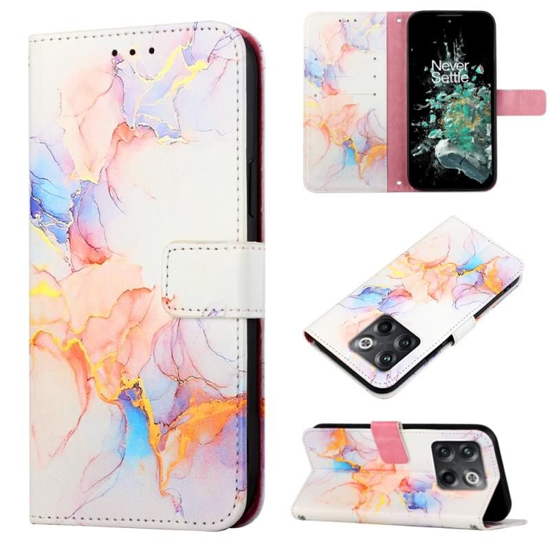 Θήκη τηλεφώνου από δέρμα με σχέδιο μαρμάρου για OnePlus 10T 5G PT003 (Ροζ Μωβ)